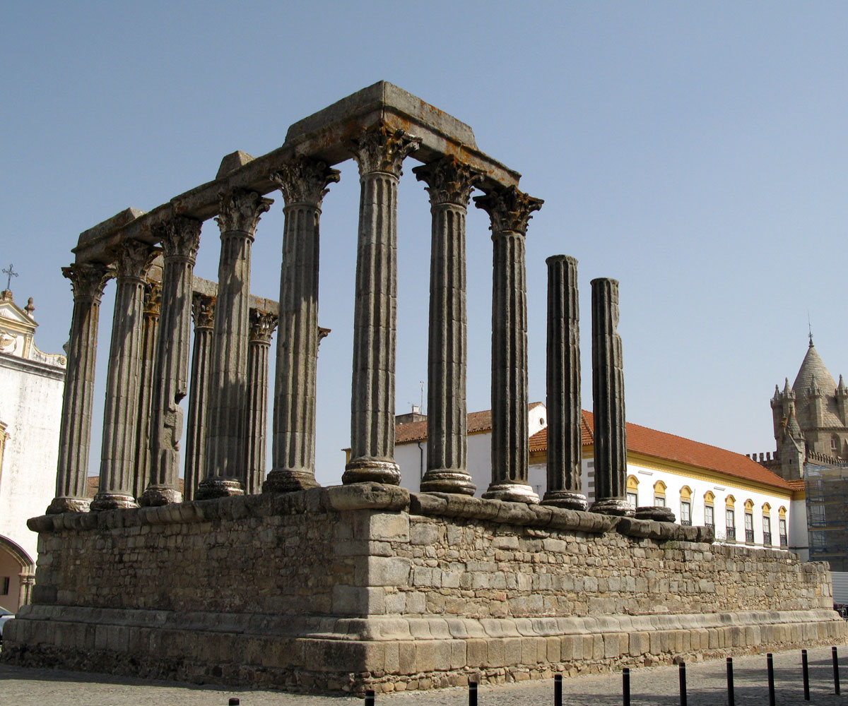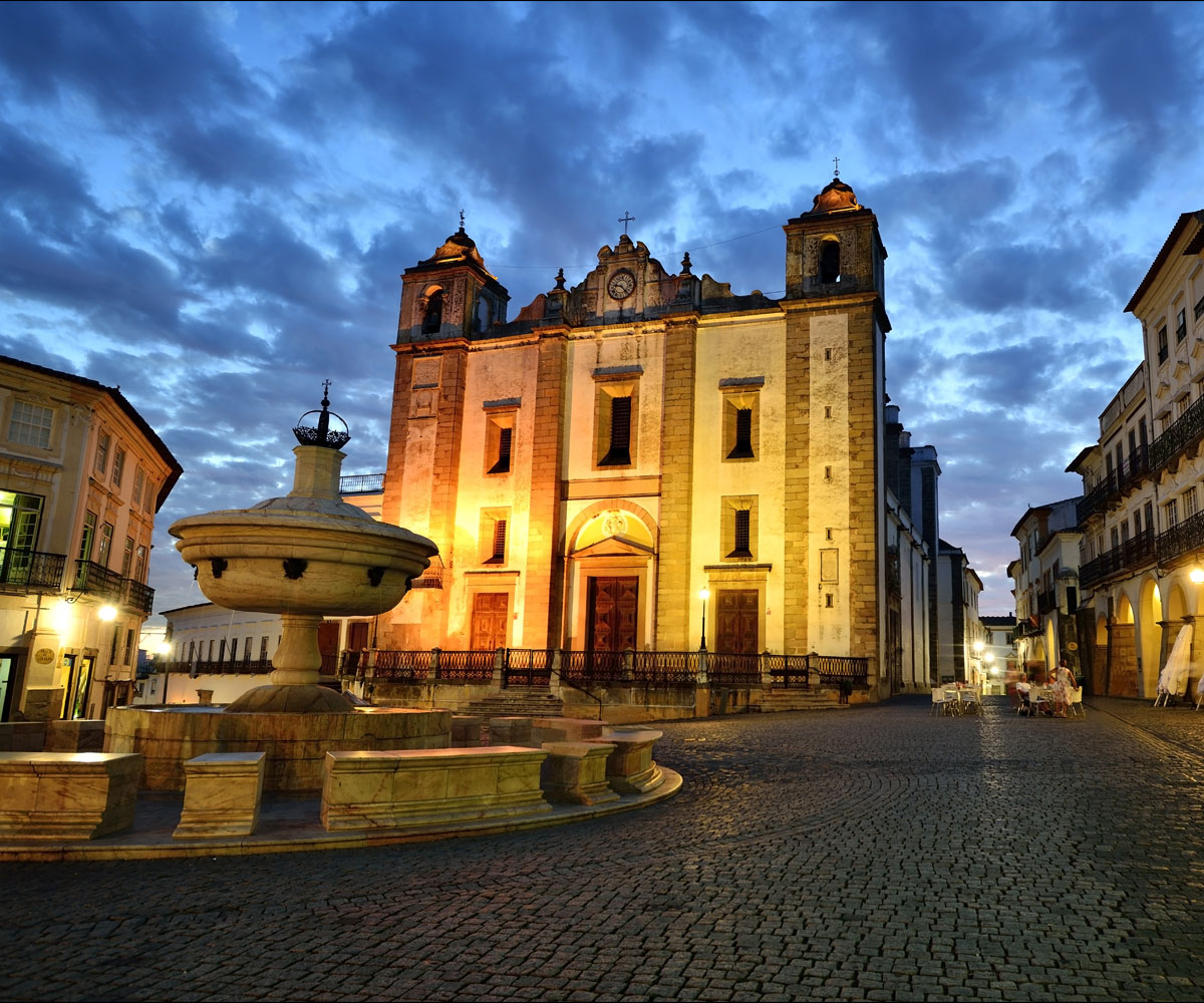 Visita ao centro Histórico donde destacamos: As ruínas do Templo Romano, visita da Sé Catedral (Romano-Gótica) do século XII, da Igreja de São Francisco, da Capela dos Ossos e da Universidade.